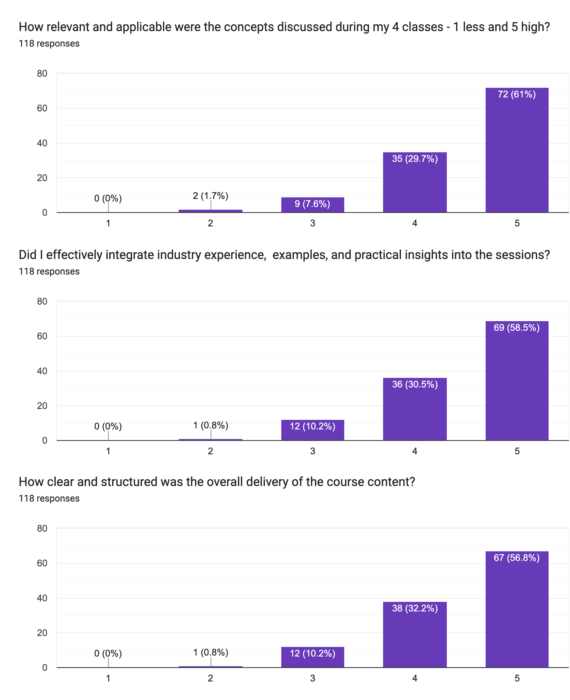 118 students’ feedback on my recent teaching assignment